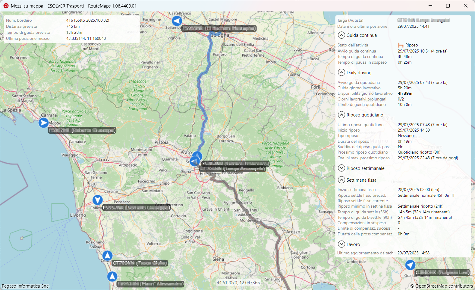 I dati del tachigrafo digitale vengono sincronizzati e utilizzati direttamente all'interno di ESOLVER Trasporti. Le ore di guida, periodi di riposo, tempi di lavoro e ogni altra informazione essenziale sono ora disponibili in tempo reale nel gestionale e nelle tue elaborazioni. Questa connessione diretta garantisce dati sempre aggiornati e accurati, offrendo una visione completa e immediata dello stato operativo di tutta la flotta.